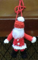 毛糸で編んだサンタさんと、いちごの飾りを持ってきて