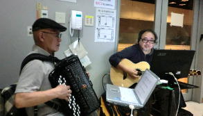 ←本日の伴奏者はキーボードの広瀬さんとギターの中谷さん。